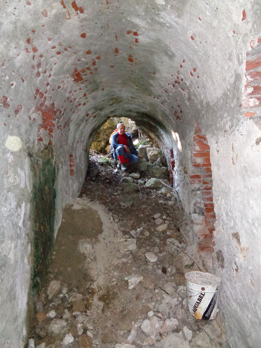 Nella breve galleria, con pareti in roccia viva e mattoni e con volta ad arco in mattoni, si aprono 3 feritoie ormai interrate e l'imbocco discendente della pusterla che dava accesso al fossato, anch'esso interrato. Date updated