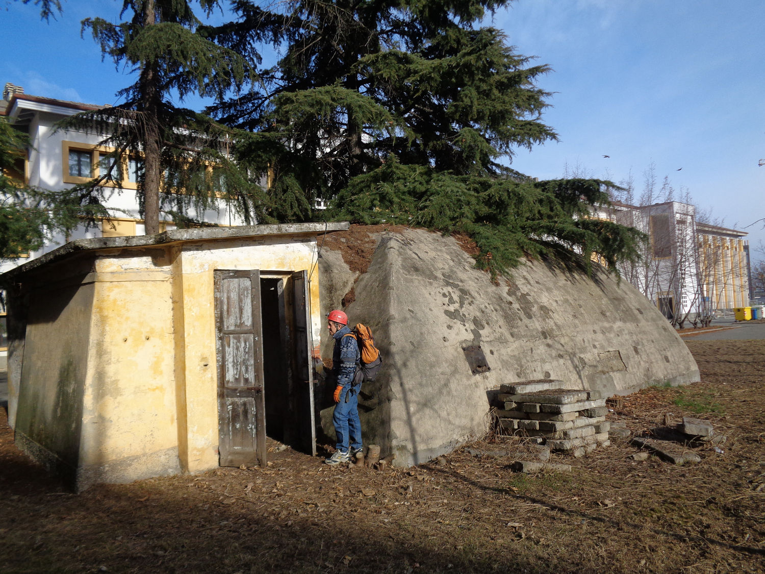 Dal locale d'ingresso si scende con una serie di rampe di scale al lungo camerone centrale disposto sotto il cortile della caserma. Da questo parte un cunicolo che doveva portare al secondo ingresso, chiuso da un muro dopo una ventina di metri. Non sappiamo dove si aprisse il secondo ingresso, se nelle cantine della caserma o fuori dal perimetro della stessa.