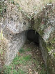 La cavità è costituita da un cunicolo con la volta ad arco e rivestito di pietre e mattoni. Il pavimento è in parte mascherato dal fango, dovuto all'accumulo di acqua (attualmente fatta defluire all'epoca della nostra esplorazione) ma sembra formato da lastre sovrapposte, in modo simile al cunicolo di deflusso del sottostante fossato. Questo induce a pensare che la finalità sia simile e che in questo caso servisse come canale di deflusso della sovrastante piazza. Al fondo il cunicolo si restringe e cambia forma, probabilmente in prossimità del punto di immissione delle acque di scarico. Ma a questo punto è interrotto da una frana sicuramente collegata alla distruzione delle strutture sovrastanti del forte, imposta dalle truppe francesi nei primi anni dell'800.