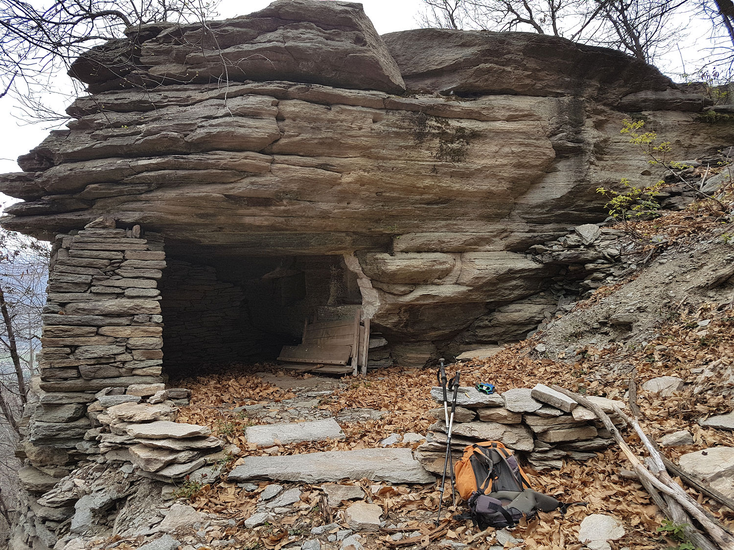 Riparo sotto un roccione sporgente, adattato ad uso abitativo levigando la parete interna e ricavandovi alcune nicchie. Due lati della cavità