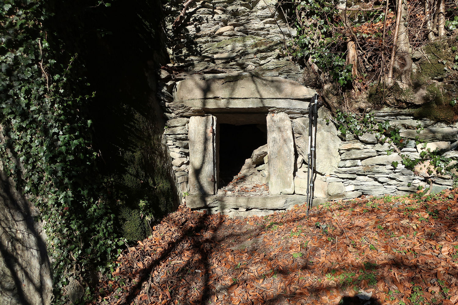 La cavità è insignificante ma per la sua posizione proprio sul sentiero e il portello d'ingresso in pietra ben curato merita una segnalazione. La porticina non c'è più ma sono ancora presenti i due robusti cardini infissi nella pietra. Sull'utilizzo non ci sono indicazioni, le dimensioni ridotte fanno pensare che fosse destinata a raccogliere un arrivo d'acqua, oggi completamente prosciugato.