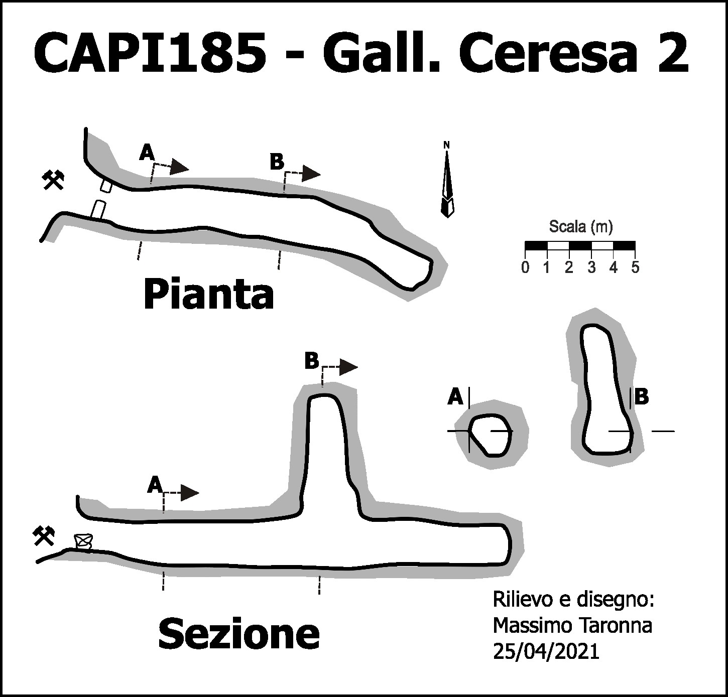 Cavità ad andamento rettilineo. A circa metà del suo sviluppo lo scavo è stato esteso verso l'alto per 4-5 m