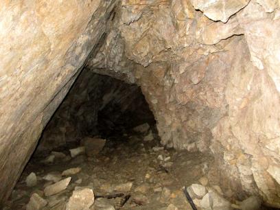 Non sappiamo nulla di questo scavo, a nostro parere si tratta di un sondaggio minerario anche se non abbiamo notato tracce evidenti di mineralizzazioni nella galleria. Stando a quanto ci è stato raccontato da una persona incontrata in zona si tratterebbe invece del tentativo di un abitante del paese di realizzare un canale di derivazione del Maira, ma l'ipotesi ci sembra poco credibile visto anche l'andamento piuttosto tortuoso della galleria.