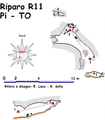 Risalendo ancora per circa venti metri il versante si raggiunge il sentiero per Ramats in un tratto pianeggiante. Procedendo verso sinistra si nota, con una certa attenzione, una traccia sulla destra che punta verso un masso di gneiss molto cariato. Risalendo oltre la traccia, si raggiunge la R13; procedendo ancora la R12 ed infine la R11 . L'uso del gps agevolerà comunque la localizzazione dei vari ingressi. (tratto da: Panta Rei - Antologia 2001-2014)