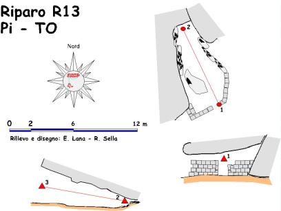 E' il più antropizzato di questo secondo gruppo di ripari. Lo spazio pianeggiante e ben livellato si stende sotto un masso che, piatto e regolare nella parte costituente il tetto, tende ad abbassarsi verso il fondo fino a diventare inagibile. L'ampia apertura dell'ingresso è stata parzialmente chiusa con un alto muro a secco che comunque non ostacola l'illuminazione totale del riparo. (tratto da: Panta Rei - Antologia 2001-2014)