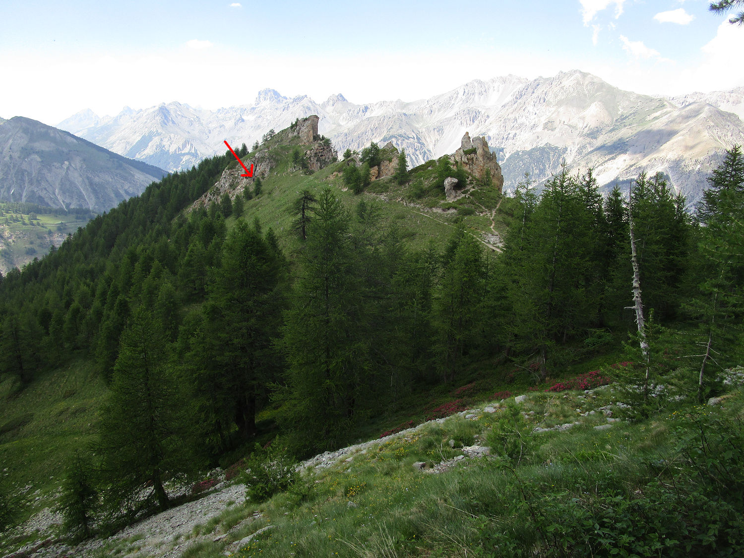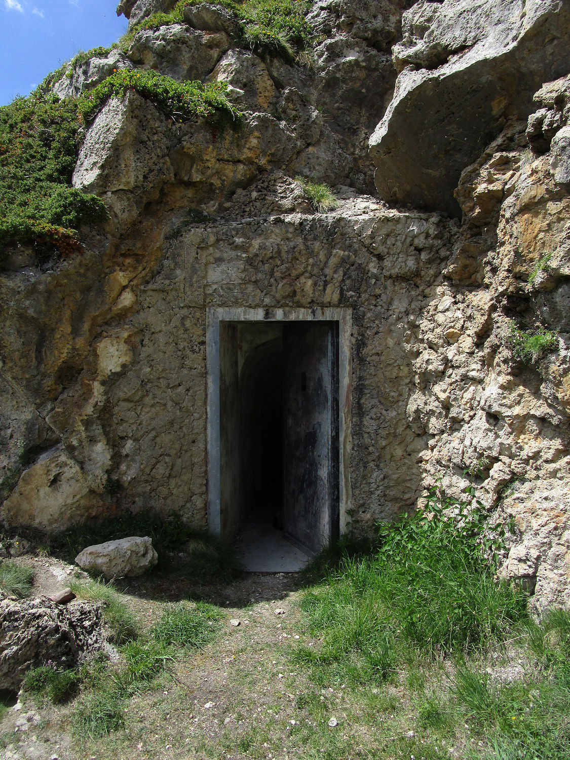 Panorama dall'ingresso dell'Opera 13 verso il Becco Rosso, con indicato l'ingresso dell'Opera 14.