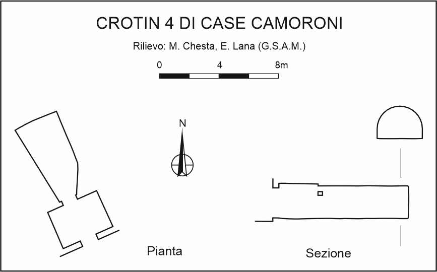Crotin in buono stato di conservazione. Articolato in due ambienti, un atrio di piccole dimensioni e una camera più lunga, separati da un muro interno con porticina d'accesso.