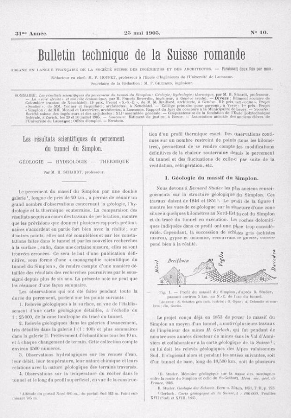 Les résultats scientifiques du percement du tunnel du Simplon. Géologie – Hydrologie – Thermique