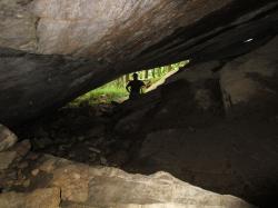Ampia cavità tettonica lungo lo scollamento di una placca rocciosa ai piedi del Castlass.