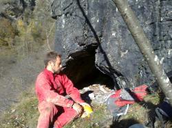 continua invece a salire seguendo il piano di diaclasi (circa 35°), fino a raggiungere un tratto meandriforme che conduce ad una sala con costante stillicidio, che per molto tempo è stata considerata la parte terminale della cavità (tratto da: Atlante delle aree carsiche piemontesi - Volume 1 (2010) Autori immagine ingresso