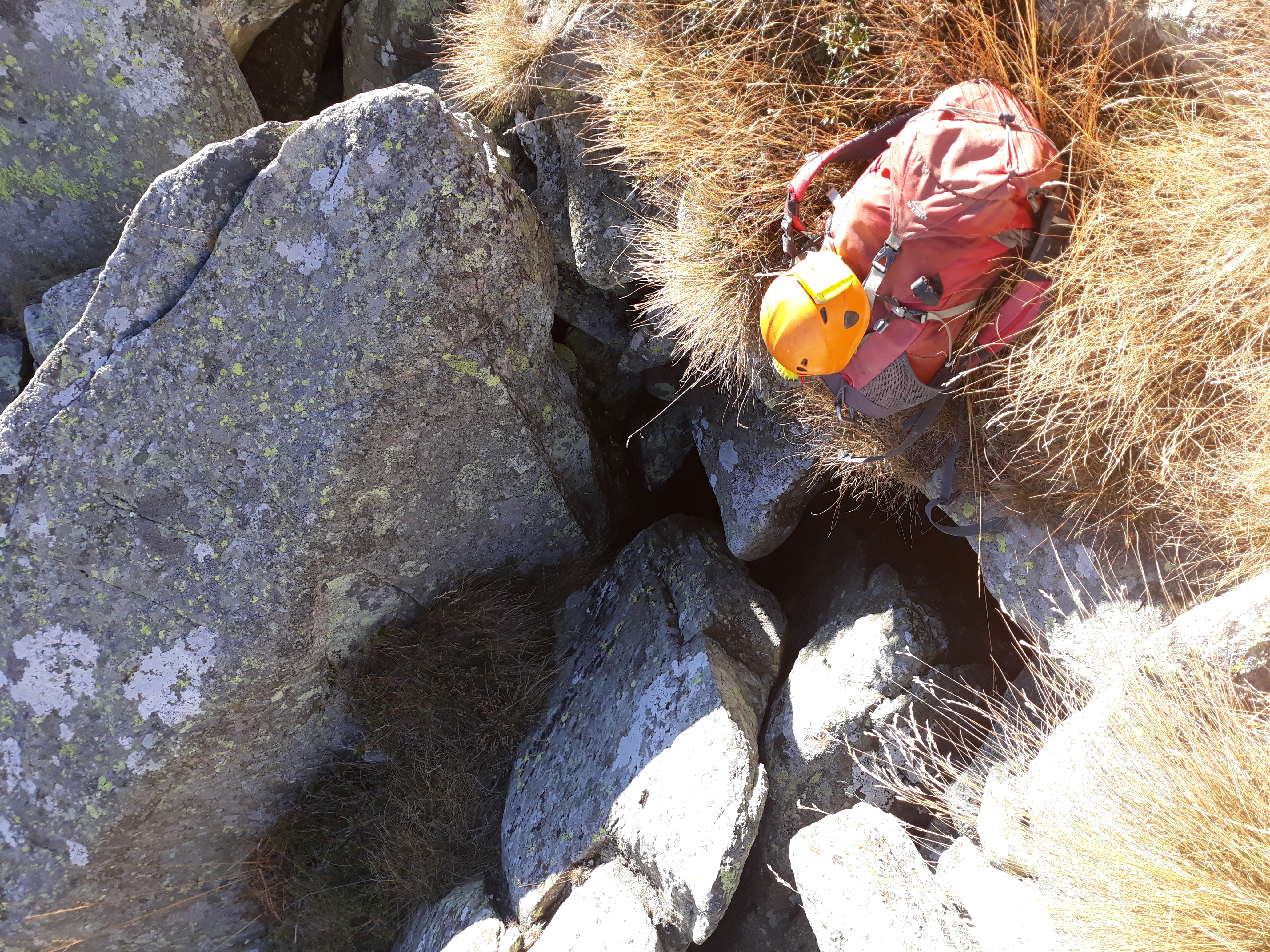Lo smantellamento di parte di quella che doveva essere un1imponente cresta rocciosa, costituita da micascisti, ha creato, sui fianchi occidentali del Monte le Colme - Cavallaria, grandi pietraie. Quasi alla sommità di una di queste è possibile scendere, in verticale tra i massi, per circa quindici metri. Non è chiaro se si penetra entro un accumulo di grandi blocchi o se la pietraia si sia insinuata all'interno di una preesistente frattura, certo è che non è possibile definire le pareti rocciose dell'eventuale frattura e che, sul fondo, uno strato di detrito fine occlude ogni possibile prosecuzione. La progressione non richiede l'uso di materiali. I passaggi sono stretti, tranne che in corrispondenza del saltino (insidioso ma superabile in libera) che permette di accedere al fondo.