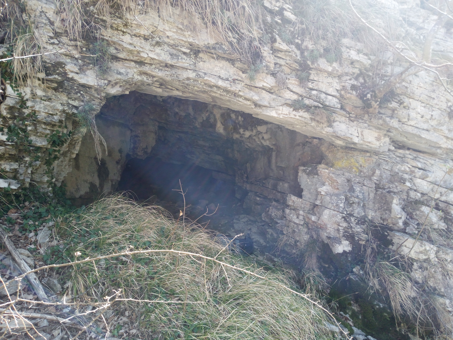 La cavità si apre nei calcari del trias dell'affioramento alla base delle Rocche Rosse e qui gli strati sono diretti a N + 190° e immersi di 25° L'ingresso è aperto in un interstrato fra straterelli poco potenti in cui il gioco delle fratture è stato facile; l'origine primaria è però dovuta all'azione delle acque. L'ingresso pianeggiante è in corrispondenza di un solco canale sovrastante il canyon in cui scorre il rio Pennavaìre; evidente segno, questo, di una fuoruscita d'acqua.