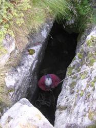 Nell'area, ricoperta da fitti arbusti di rododendro, si aprono numerose altre cavità il che richiede molta attenzione nell'affrontare il percorso. (tratto da: Panta Rei - Antologia 2001-2014) Lithologie de l'entrée