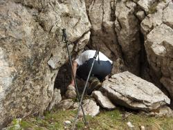 Condotta sotto pressione lunga 35 m che va a dividersi in tre rami tutti stretti o da disostruire. Sensibile aria soffiante.