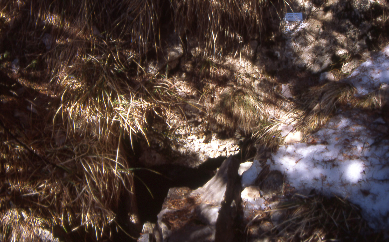 La grotta, frutto della disostruzione, segue l’aria in mezzo ad una frana. La progressione si ferma in una grande frana nell’amonte del sifone.