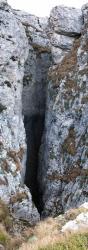 pendii molto ripidi con arbusti, la base di un canalino erboso, interrotto da due salti rocciosi; alla sua sommità si apre l'ampio ingresso inferiore dell'abisso. (tratto da: Speleologia del Piemonte - Parte II: il Monregalese) Position vérifiée de