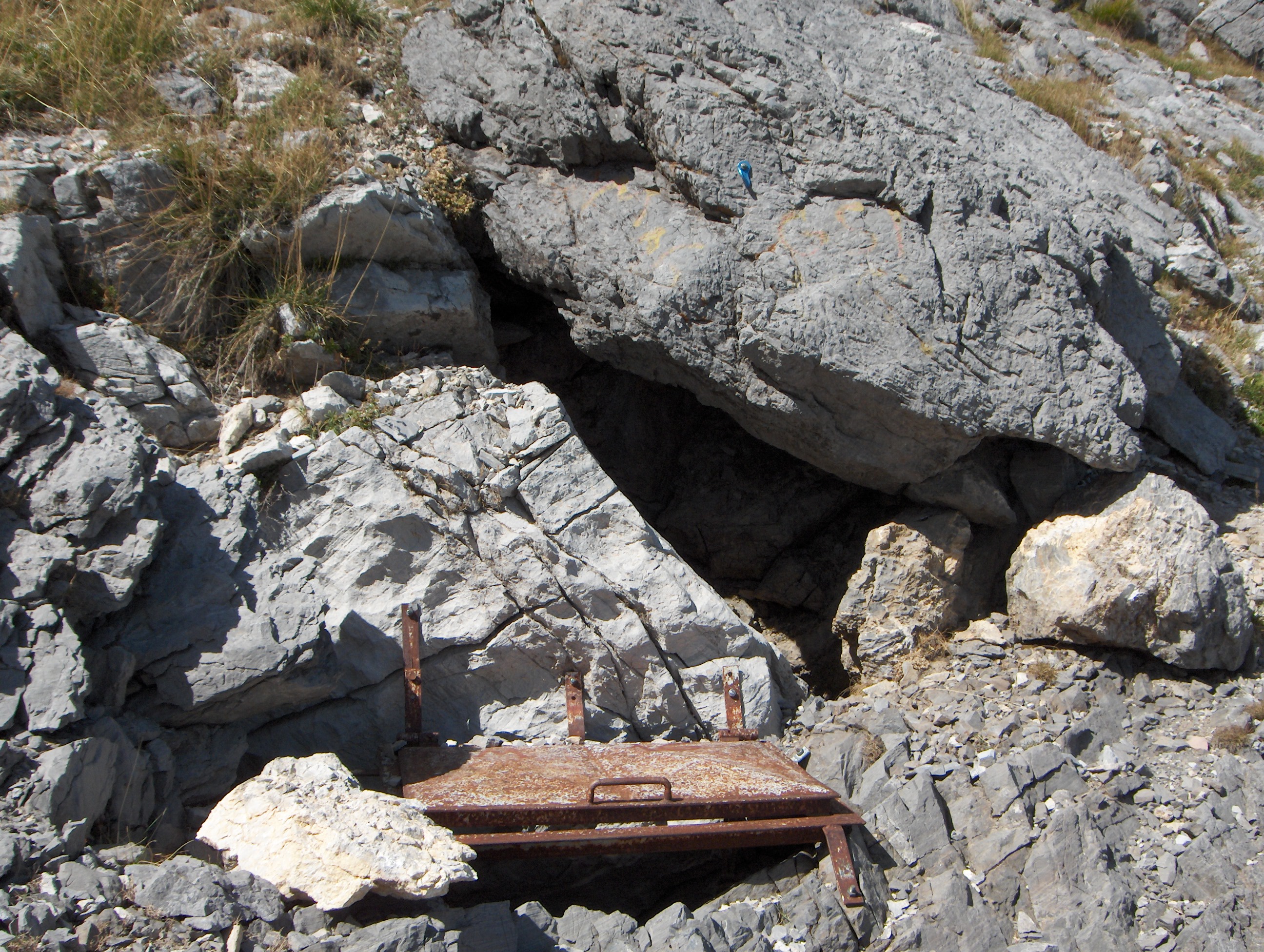 Seguendo la violenta corrente d’aria, dopo una cinquantina di metri, si spalanca un pozzo di 107 m (disceso nell’agosto ‘94): il fondo a -328 m, è una frattura verticale.