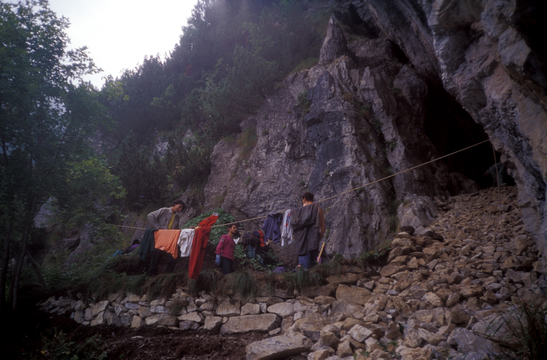 Dopo la frana, una grande galleria piomba in uno scivolo fangoso. Poco prima, sulla sinistra, si sviluppa un enorme freatico, presto completamente intasato. Dalla base dello scivolo si risale un ripido condotto, a cui segue un meandrino dopo un allargamento, che permette di riguadagnare la quota della galleria iniziale. Qui si innesta, sempre sulla sinistra, un vasto arrivo, la cui arrampicata immette in un modesto ramo ascendente, che termina, dopo poche decine di metri, in una saletta di 10x4 m, senza possibilità di continuazione. La galleria principale