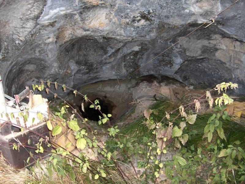 Condotta di 3 metri di diametro all'ingresso. Segue scavo. Chiude su fango.