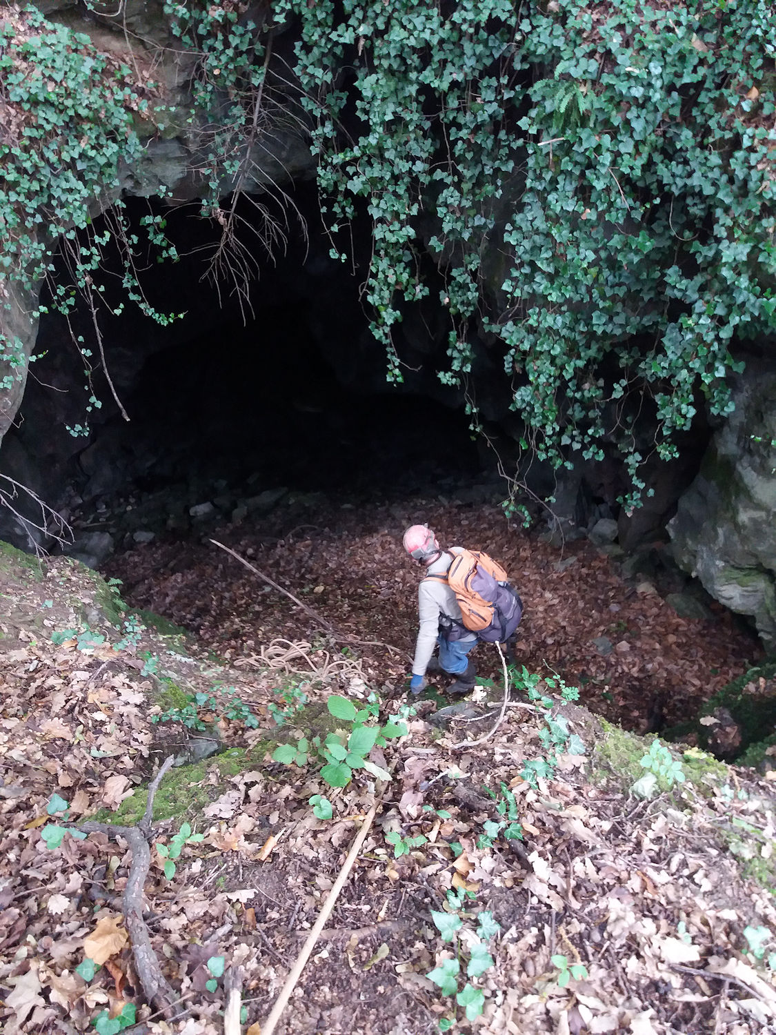 Grotta segnalata da Paolo Lombardi, probabilmente già visitata in precedenza da altri speleologi. Un ampio pozzo-scivolo immette in una spaziosa sala, senza prosecuzioni evidenti.