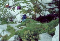 Pozzo-lapiaz di limitato sviluppo con due ingressi.