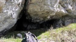 L'ingresso basso (m 1 X 4) volto a S, aperto in calcare del trias, immette attraverso un restringimento in un salone ascendente (m 10 X 25) con frane e setti rocciosi, isolati dalla fusione di cavità aperte in diaclasi parallele (ben visibili nella volta); ai lati vi sono brevi cunicoli e laminatoi. Il salone termina dopo breve salita in un vano chiuso con nicchiette e pozza d'acqua in disgelo. Verso la sua metà presenta sul lato destro una spaccatura attraverso cui si accede a un cunicolo con nicchie e anfratti laterali, e pareti a tratti rivestite di colate calcaree. Il corridoio quindi svolta, si apre in uno slargo con frane e termina in fessura intasata da terriccio; a sinistra presenta una angusta diramazione a fondo fangoso. In totale la grotta misura m 143 di lunghezza e ha un dislivello di m-6.