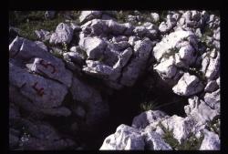L’F16 si trova a pochi metri da F15, è un ampio pozzo impostato su frattura, con neve sul fondo. (tratto da: Atlante delle aree carsiche piemontesi - Volume 2 (2010) Geologia