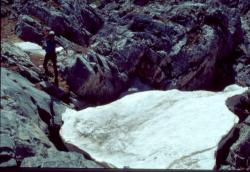 Dolina di crollo con piccolo cunicolo intasato da frana (che termina sotto la dolina di Omega 11).