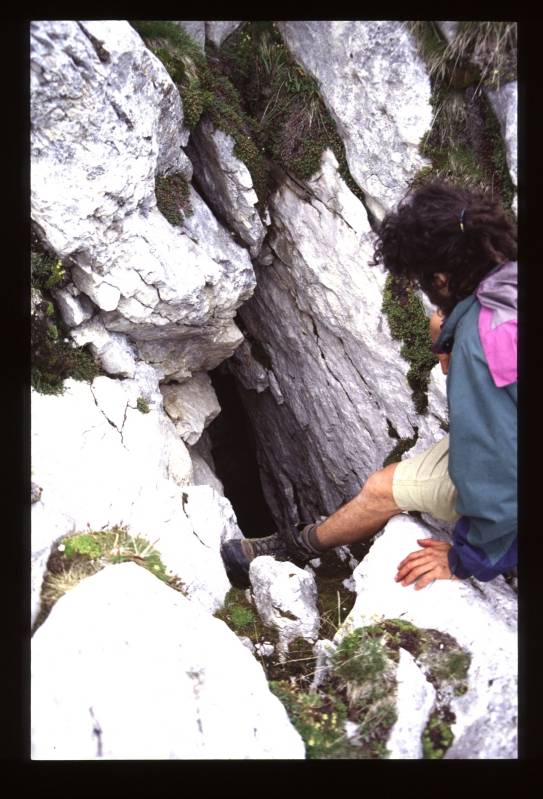 Si apre con un P27, spazzato da una violenta corrente d’aria soffiante in estate, a cui seguono una risalita di 10 m, uno stretto meandro, quindi un P8 e un P15 e un bel P37. Impostati su un’unica frattura seguono quindi tre pozzi di 69, 16 e 12 m. La grotta prosegue con una breve galleria fossile che porta a un P15 e a un successivo P34. Sceso un ennesimo P5 e traversato un breve pozzo, occorre risalire qualche metro per arrivare alla partenza di un P20. Si risale ancora per qualche metro per scendere un P16 seguito da qualche metro di difficile progressione per raggiungere altri due pozzi di 43 e 45 m. Una sala presenta ora due gallerie: occorre seguire quella discendente che con due salti di 5 e 7 m raggiunge un piccolo rio. La galleria ora continua larga fino a un sifone, scavalcabile, fino a un P18 e un ultimo P6, l’ultimo, che è anche il punto di contatto con F5. (tratto da: Atlante delle aree carsiche piemontesi - Volume 2 (2010)