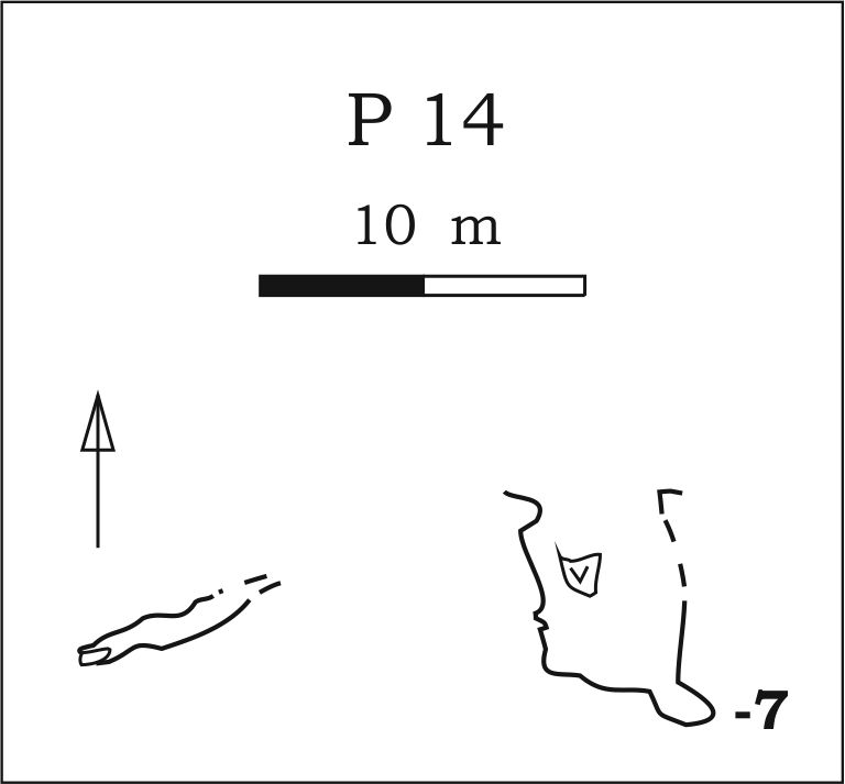 Numero:1167;Nome:P-14 di Costa Lausea;Regione:Piemonte;Provincia:CN;Comune:Vernante;Toponimo locale:Costa Lausea;Area carsica:Roccavione - Palanfré;Latitudine:381068;Longitudine:4891863;Datum:UTM WGS84;Convertite da:UTM ED50;Quota altimetrica (m.slm):2210;Sviluppo reale (m):7;Dislivello negativo (m):7;Dislivello totale (m):7;Note_:N.C.;