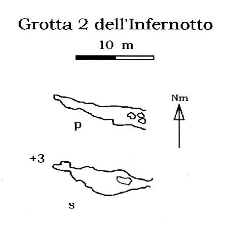 Numero:1176;Nome:Grotta 2 dell'Infernotto ;Regione:Piemonte;Provincia:CN;Comune:Valdieri;Toponimo locale:Comba dell'Infernotto;Area carsica:Roccavione - Palanfré;Latitudine:373368;Longitudine:4901753;Datum:UTM WGS84;Convertite da:UTM ED50;Quota altimetrica (m.slm):1150;Sviluppo reale (m):13;Dislivello positivo (m):3;Dislivello totale (m):3;Note_:N.C.;