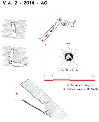 Numero:2014;Nome:V.A. 2;Regione:Valle d'Aosta;Provincia:AO;Comune:Saint-Nicolas;Latitudine:355222;Longitudine:5066650;Datum:UTM WGS84;Convertite da:UTM ED50;Quota altimetrica (m.slm):2388;Sviluppo reale (m):9;Dislivello negativo (m):5;Dislivello totale (m):5;
