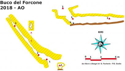 Numero:2018;Nome:Buco del Forcone;Regione:Valle d'Aosta;Provincia:AO;Comune:Saint-Pierre;Latitudine:360652;Longitudine:5066144;Datum:UTM WGS84;Convertite da:UTM ED50;Quota altimetrica (m.slm):1565;Sviluppo reale (m):10;Dislivello negativo (m):2;Dislivello totale (m):2;