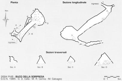 Numero:2684;Nome:Buco della Sorpresa;Regione:Piemonte;Provincia:VB;Comune:Loreglia;Area carsica:Rocca Massiola - Sambughetto;Latitudine:450195;Longitudine:5084515;Datum:UTM WGS84;Convertite da:UTM ED50;Quota altimetrica (m.slm):1040;Sviluppo reale (m):27;Dislivello negativo (m):12;Dislivello totale (m):12;Note_:N.C.;