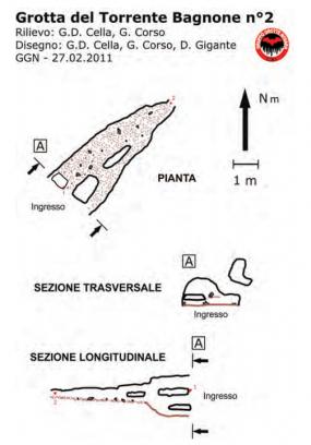 La grotta, si sviluppa nel fianco orientale dello stesso banco di calcefiri di Bagnone 1. La grana di colore biancastro-grigio appare qui più fine; la superficie esterna si presenta decisamente più alterata, di un colore rossastro molto intenso.