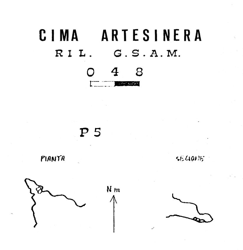Numero:3031;Nome:P-5 dell'Artesinera;Regione:Piemonte;Provincia:CN;Comune:Frabosa Soprana;Area carsica:Artesinera - Prato Nevoso;Latitudine:403648;Longitudine:4898413;Datum:UTM WGS84;Convertite da:UTM ED50;Quota altimetrica (m.slm):1750;Sviluppo reale (m):6;Dislivello negativo (m):1;Dislivello totale (m):1;