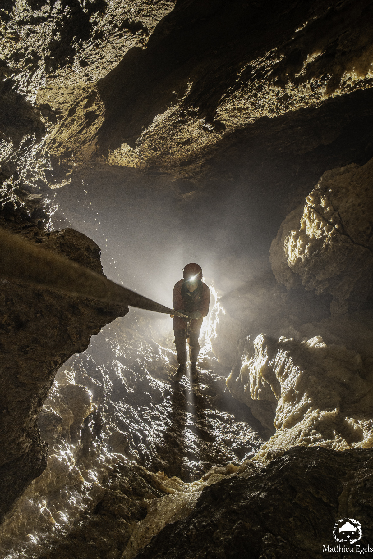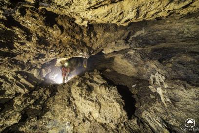La grotta è un abisso verticale, ma non ha grandi sistemi di pozzi. L’ingresso è un lungo meandro negli scisti, concrezionato e dalle chiare morfologie vadose; immette in un grande livello di gallerie che conduce ad un vasto e complesso salone di crollo, dalla struttura molto simile ai saloni di Piaggia Bella. L’ambiente è in forte pendenza e punta all’esterno andando a monte, mentre verso valle immette in due rami verticali, entrambi attivi, che conducono verso due fondi.