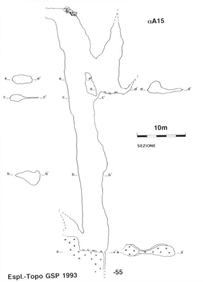 Pozzo vicinissimo ad Alfa-45 che chiude a -55 con pietre e neve e pochissima aria.
