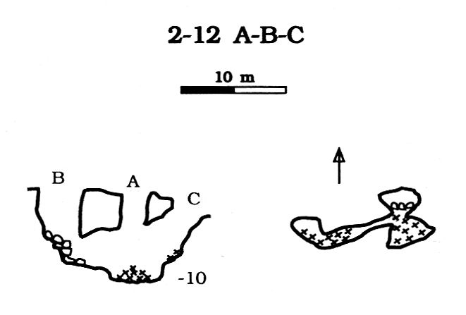 Numero:3182;Nome:2-12 ABC delle Carsene;Regione:Piemonte;Provincia:CN;Comune:Briga Alta;Area carsica:Carsene - Pian Ambrogi;Latitudine:391513;Longitudine:4893046;Datum:UTM WGS84;Convertite da:UTM ED50;Quota altimetrica (m.slm):2083;Sviluppo reale (m):32;Dislivello negativo (m):10;Dislivello totale (m):10;Note_:N.C.;