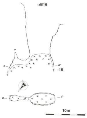 Numero:3223;Nome:Alfa B-16 del Biecai;Regione:Piemonte;Provincia:CN;Comune:Roccaforte Mondovì;Toponimo locale:Biecai;Area carsica:Biecai - Serpentera;Latitudine:397272;Longitudine:4892575;Datum:UTM WGS84;Convertite da:UTM ED50;Quota altimetrica (m.slm):2097;Sviluppo reale (m):16;Dislivello negativo (m):16;Dislivello totale (m):16;Note_:N.C.;
