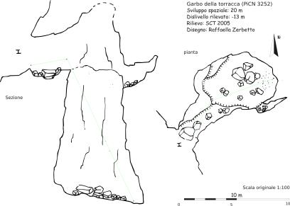 Numero:3252;Nome:Garbo della Torracca;Altra denominazione:Pozzo delle celle degli Stanti;Regione:Piemonte;Provincia:CN;Comune:Ormea;Area carsica:Cima Verzera;Latitudine:408766;Longitudine:4893475;Datum:UTM WGS84;Convertite da:UTM ED50;Quota altimetrica (m.slm):1919;Posizione verificata su campo da curatore:Massimo Sciandra;Sviluppo reale (m):23;Dislivello negativo (m):14;Dislivello totale (m):14;Note_:N.C.;