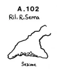 Numero:3266;Nome:A-102 del Marguareis;Regione:Piemonte;Provincia:CN;Comune:Briga Alta;Toponimo locale:Marguareis;Area carsica:Marguareis - Pian Ballaur - Saline;Latitudine:394979;Longitudine:4890777;Datum:UTM WGS84;Convertite da:UTM ED50;Quota altimetrica (m.slm):2227;Sviluppo reale (m):10;Dislivello negativo (m):4;Dislivello totale (m):4;