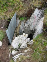 Da Ormea si segue la sterrata che porta a Colla dei Termini. Quando la strada inizia a scendere, si prosegue per qualche tornante, prima di raggiungere le malghe di Zotte degli Stanti. Lasciata la macchina, si imbocca una piccola traccia che traversa il ruscello. La grotta si apre sul dosso di calcari bianchi. (tratto da: Atlante delle aree carsiche piemontesi - Volume 2 (2010)