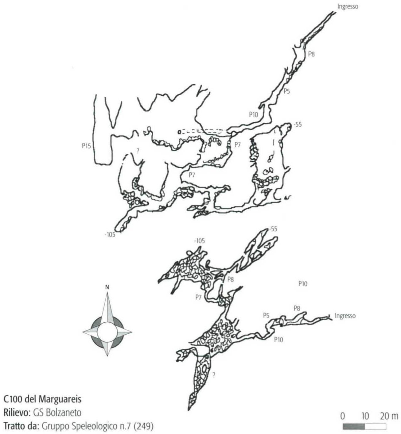 C100 del Marguareis - pianta e sezione