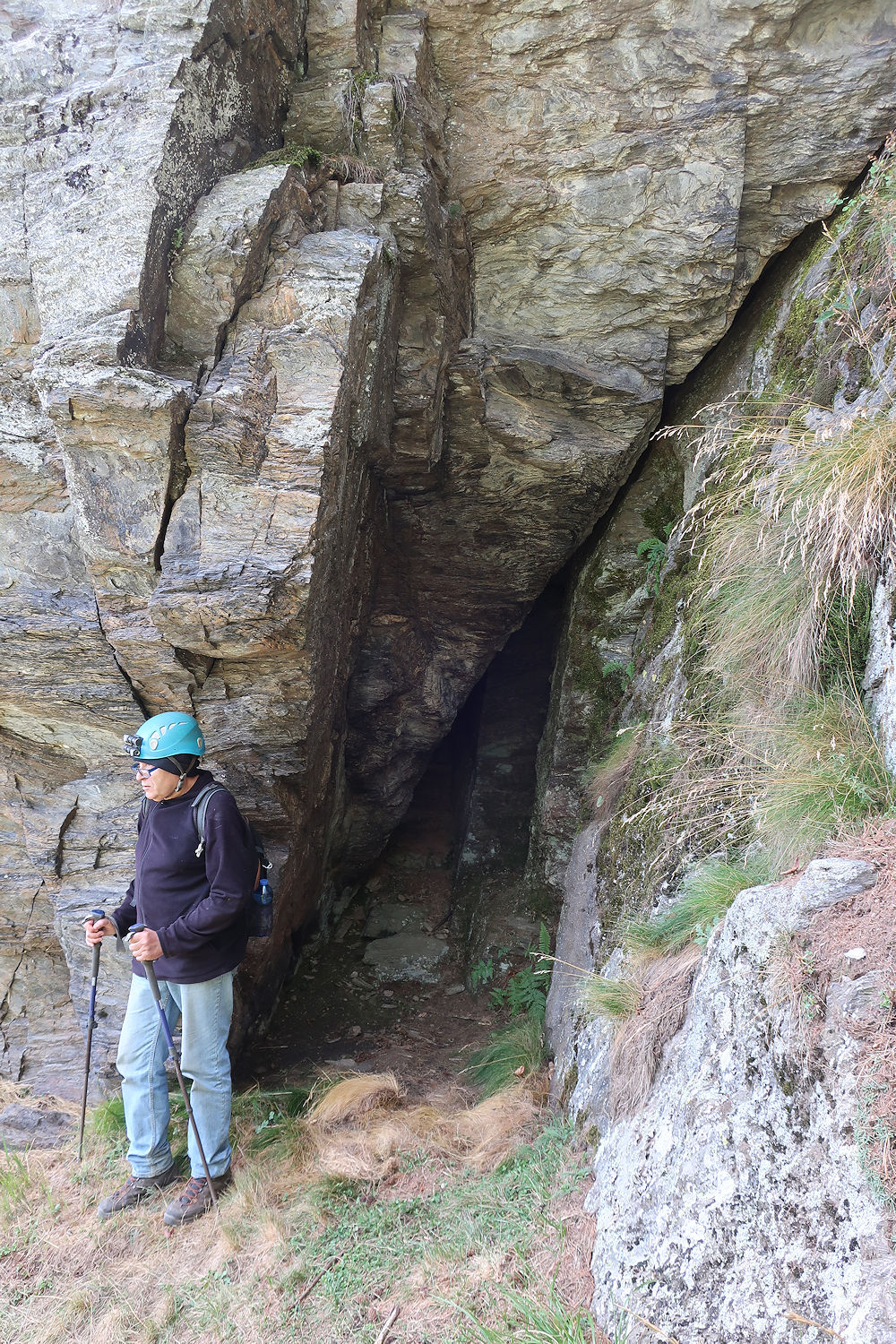 Modesta cavità impostata su frattura che stringe al fondo, segnalata da un apposito cartello.
