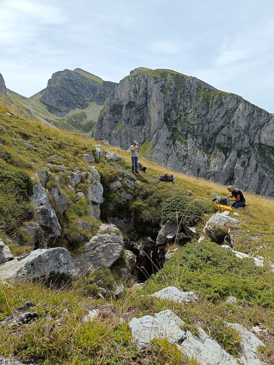 Il fondo stringe su un piccolo inghiottitoio debolmente aspirante, mentre sulla sinistra un cunicoletto è pieno di pietre.