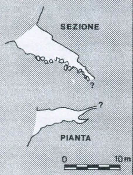 Cavità discendente, posta nella parte centrale della zona in esame, geneticamente collegata a fenomeni di dissoluzione - erosione lungo un interstrato, impostata su un giunto intersecato da una diaclasi ortogonale. Una disostruzione ha condotto dopo pochi metri ad una strettoia.