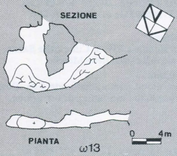 Due ingressi, di cui quello superiore a pozzo, dal quale entra molta neve, che si accumula.