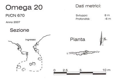 Fessura molto stretta, profonda m 5. Possibile l'allargamento mediante disostruzione.