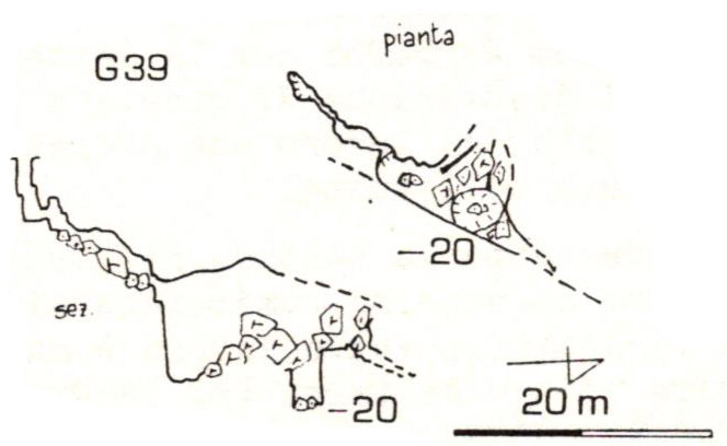 Meandro nei calcari del Malm che immette in una sala caotica chiusa da frana.